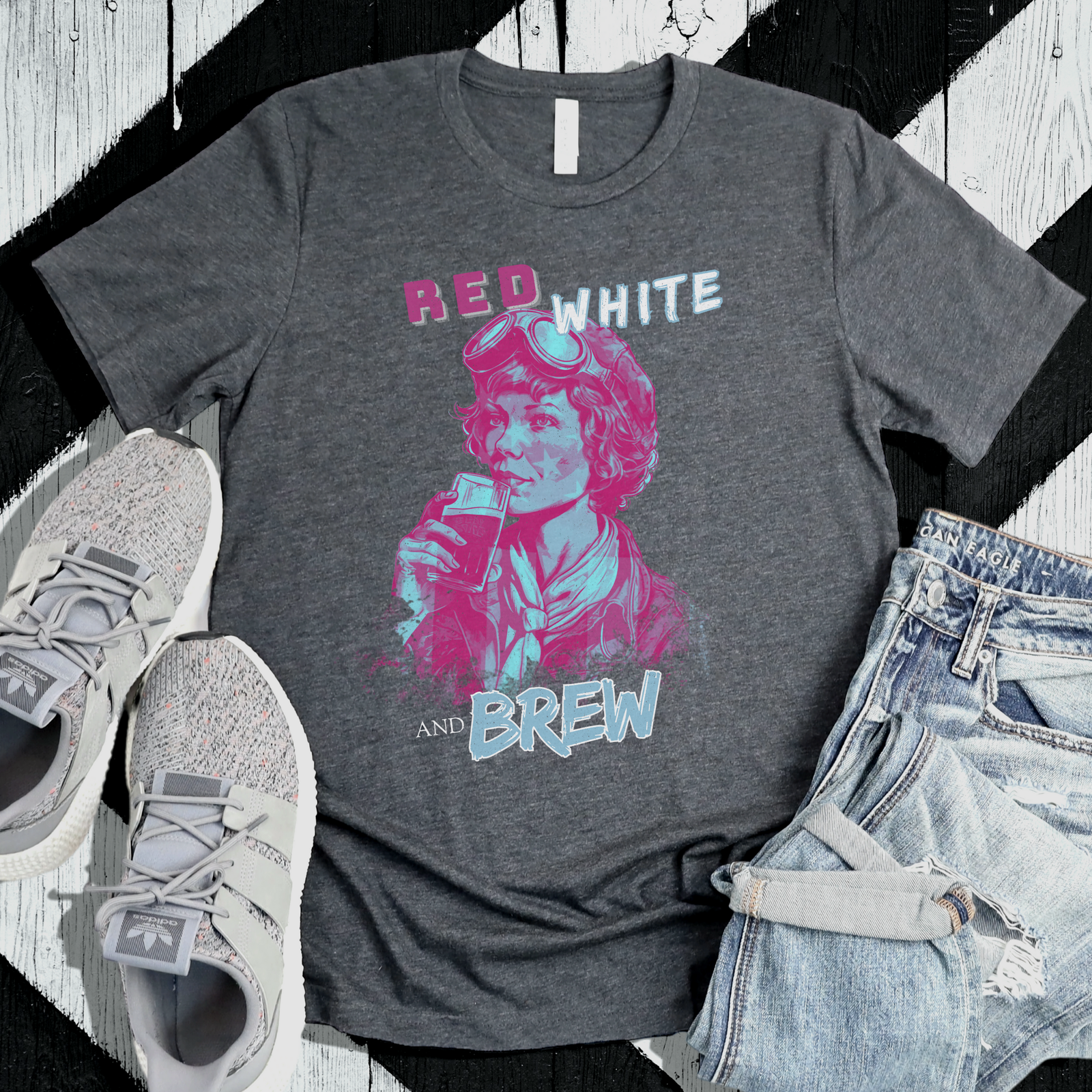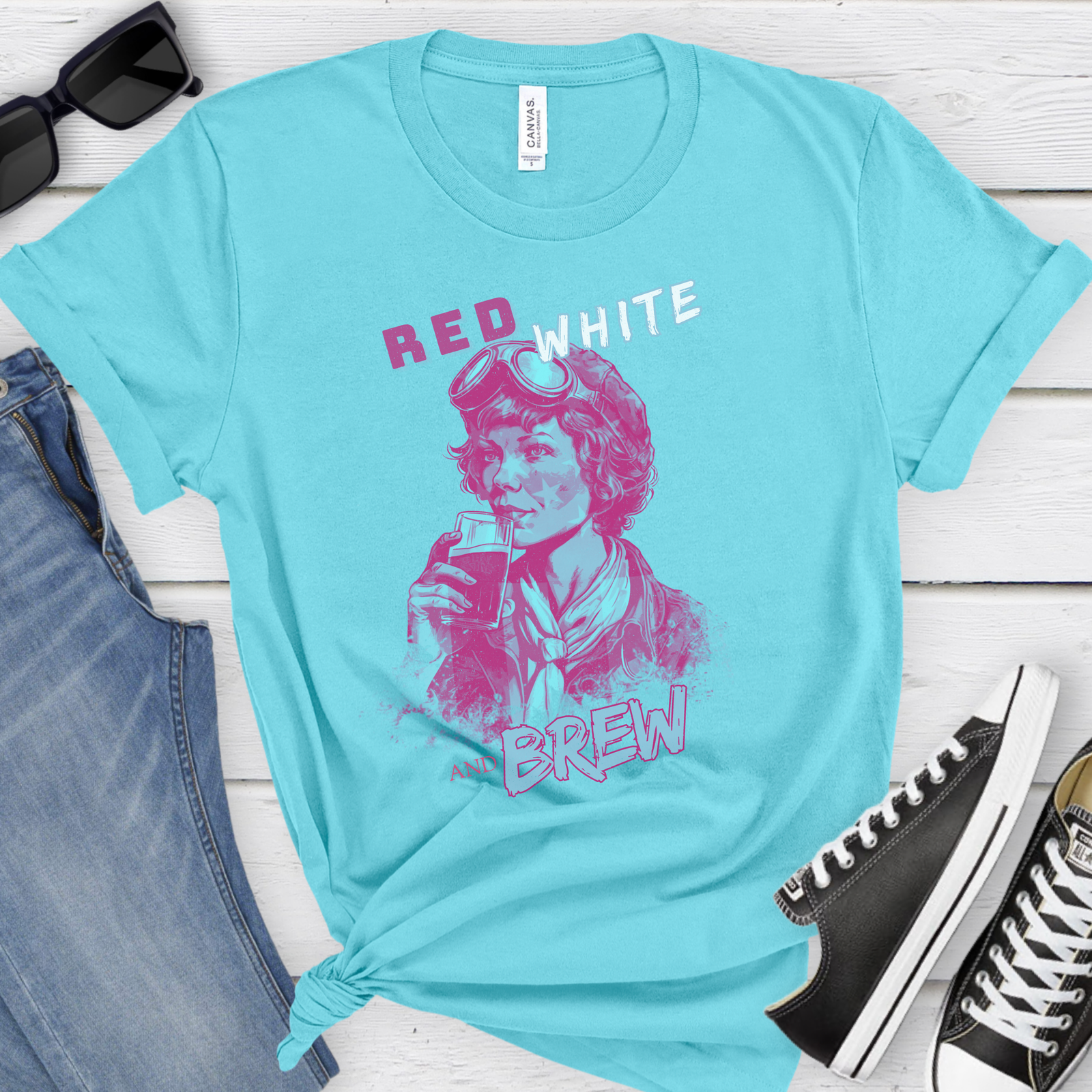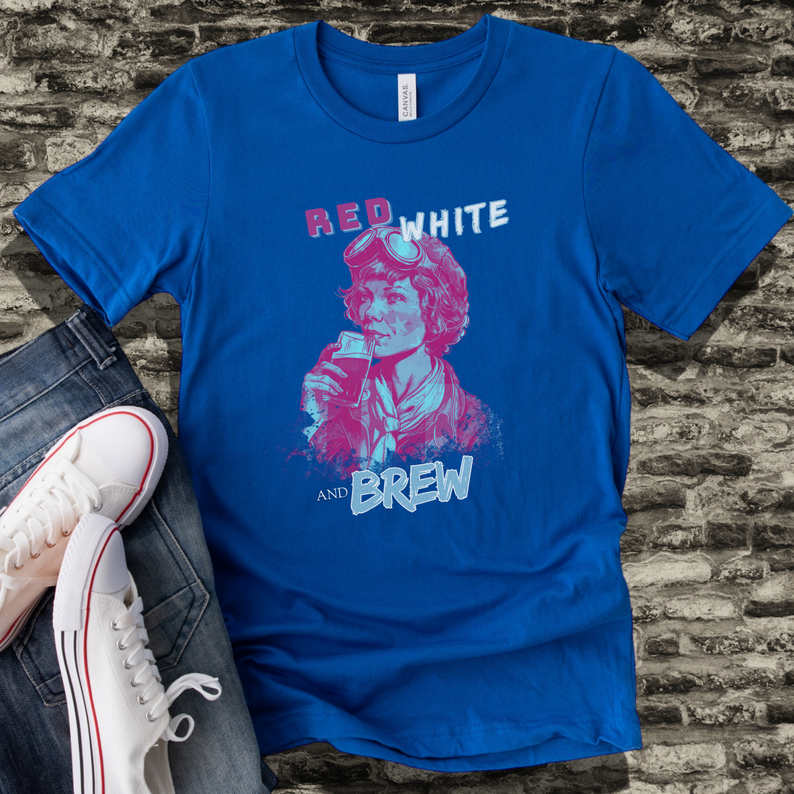 Take flight with our Amelia Earhart Red, White, and Brew t-shirt! This inspiring design celebrates one of aviation’s greatest pioneers while toasting to American innovation and adventure. Perfect for trailblazers, history buffs, and anyone who believes in reaching for the stars—with a cold beer in hand, of course.