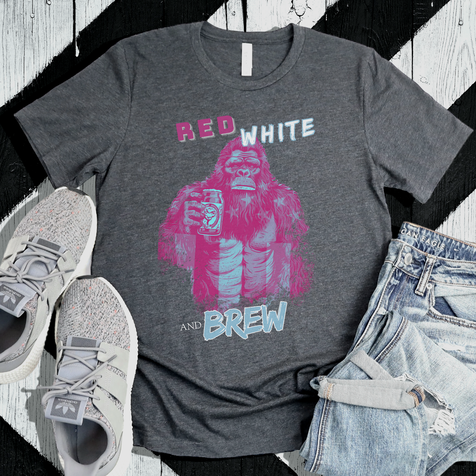 Crafted from premium, comfortable fabric, this Bigfoot tee is built for exploring—whether you’re hiking through the wilderness or navigating a backyard BBQ. The playful design shows our favorite forest dweller embracing his patriotic side, making it ideal for cryptid enthusiasts and beer lovers who aren’t afraid to stand out from the crowd.