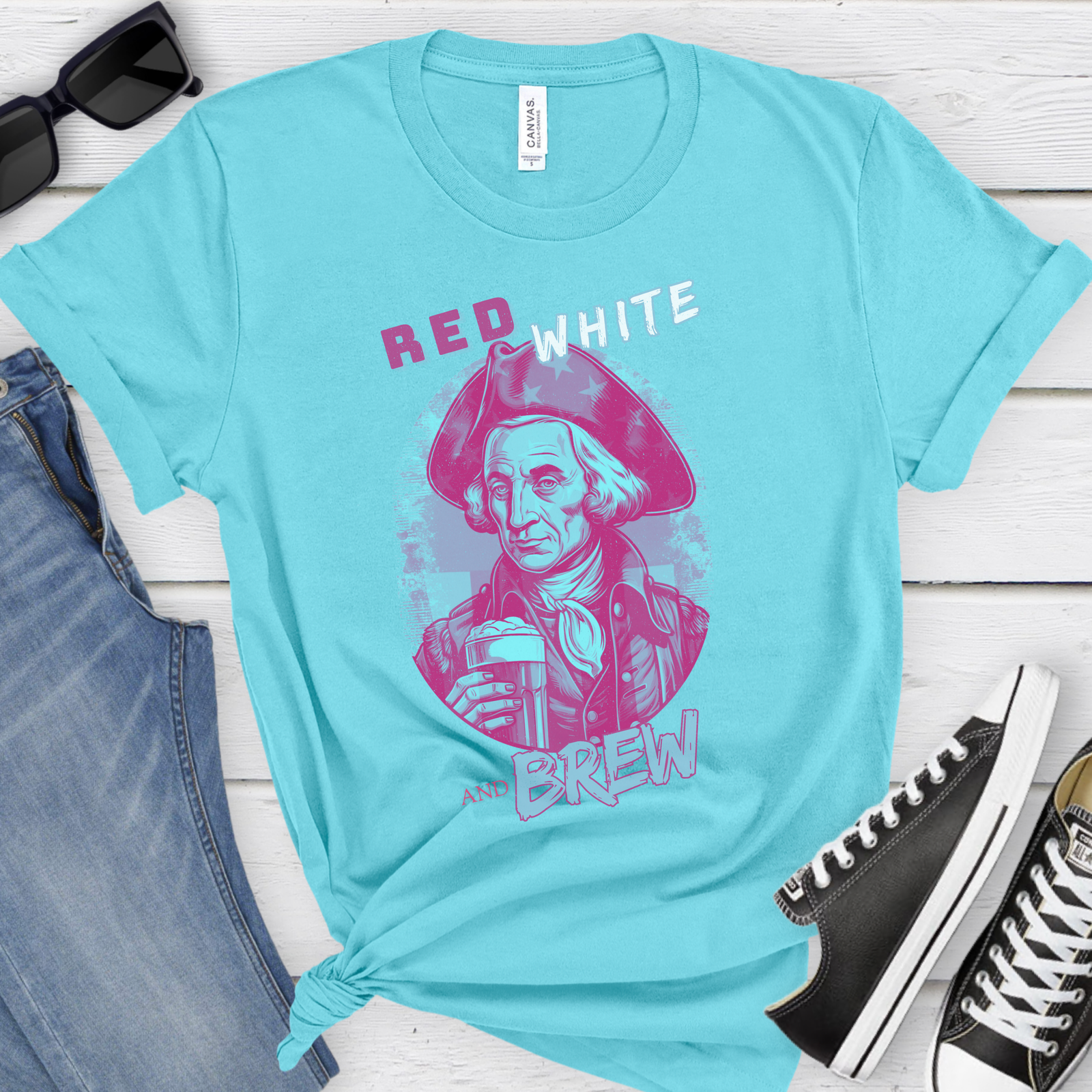 Raise a glass to the father of our nation with our George Washington Red, White, and Brew t-shirt! This distinguished design pays homage to America’s first president while celebrating the timeless tradition of American brewing. Perfect for history enthusiasts and patriots who appreciate both legacy and a well-crafted beverage.