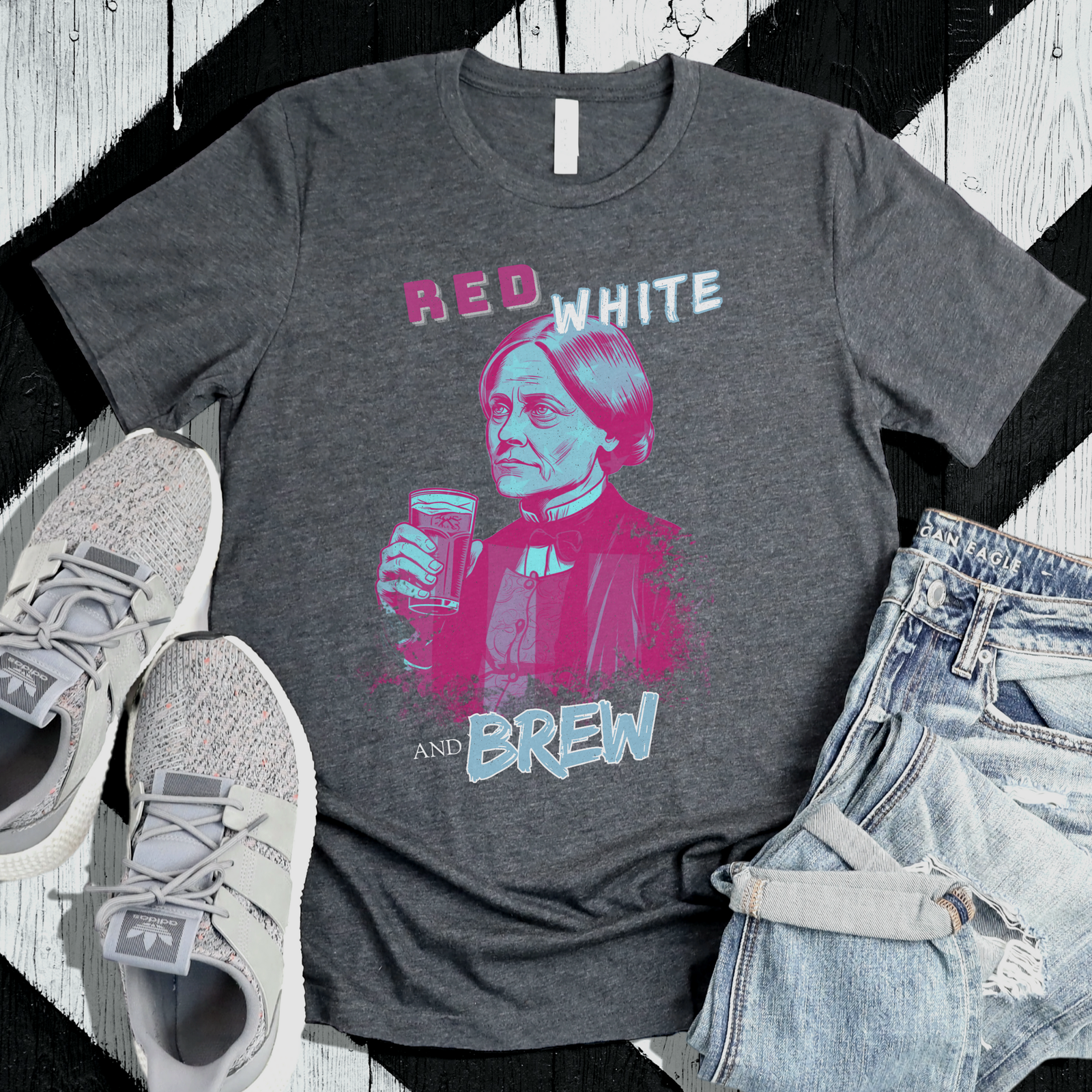 Stand up and be counted with our Susan B. Anthony Red, White, and Brew t-shirt! This empowering design celebrates one of America’s most fearless activists while toasting to the progress she helped achieve. Perfect for trailblazers, feminists, and anyone who believes in equality—and knows how to celebrate victories, both big and small.