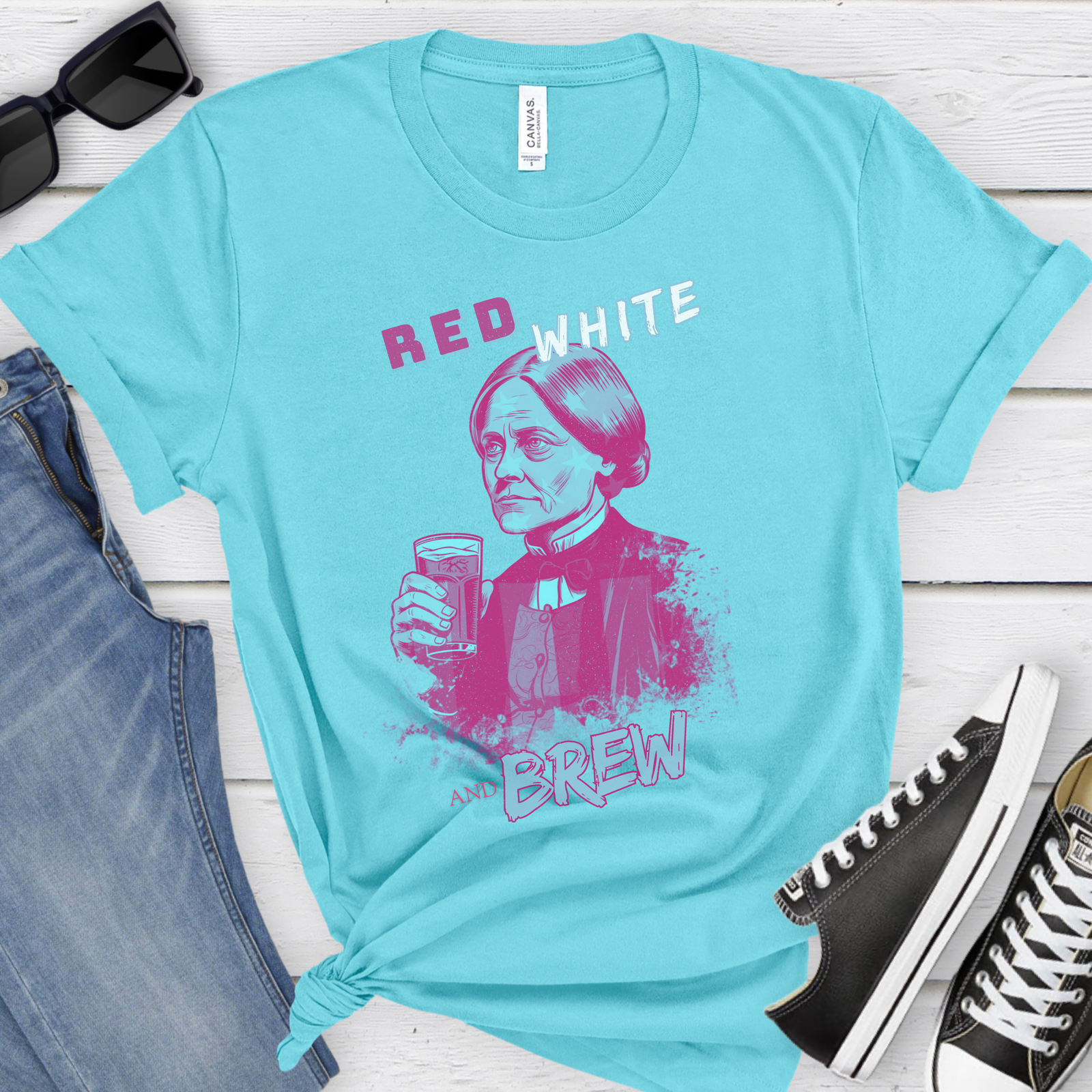 Be the first to review “Modern Susan B. Anthony Red, White, and Brew T-Shirt”
